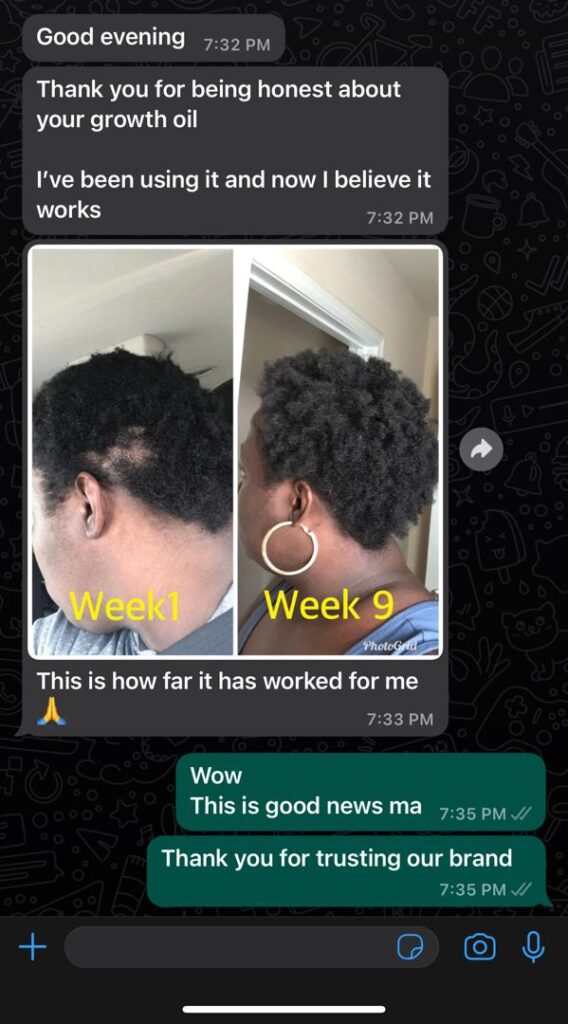 I’m here to introduce you to the same formula that has already helped over 1,200 men and women in Ghana and Nigeria overcome hair loss, thinning, and breakage.